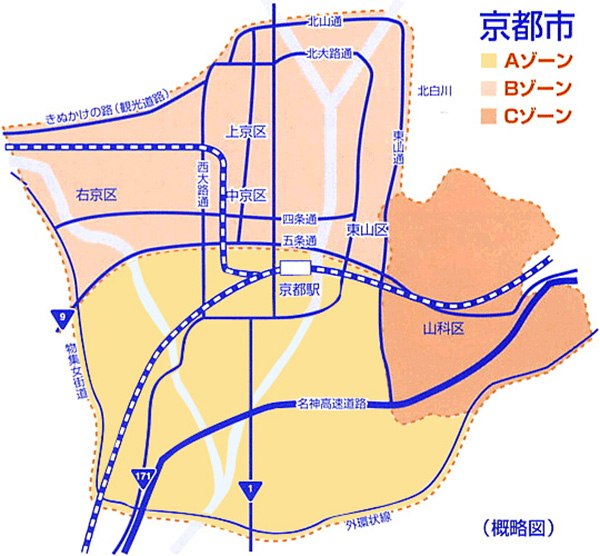 | ゾーン外 | A~Cゾーン以外の京都市域交通圏 |